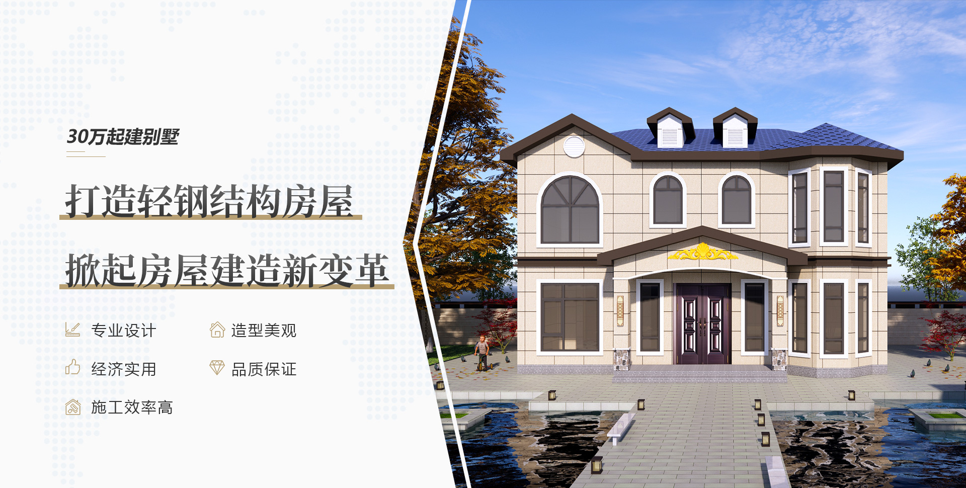 專業(yè)的設計師團隊,個性化定制輕鋼別墅高端住宅,擁有多年項目施工經(jīng)驗,完成上千套鋼結構房屋的施工,完善的售后服務,讓您建房無憂!